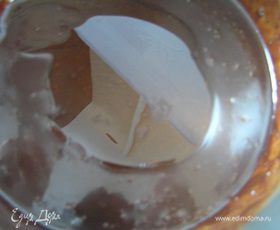 нагревать, пока шоколад не растает, снять с огня. Добавить кедровое масло, перемешать.