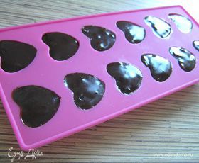 разложить по силиконовым формочкам, убрать в холодильник на 2-3 часа до застывания. Перед подачей поместить формочки в морозилку минут на 7-10 минут, чтобы легче было извлечь конфеты.