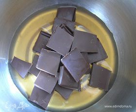 Сироп налить в кастрюльку, добавить поломанный на кусочки шоколад,
