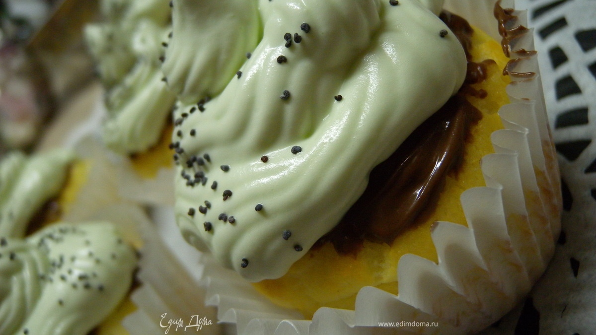 Творожные капкейки с нутеллой и сливочным кремом