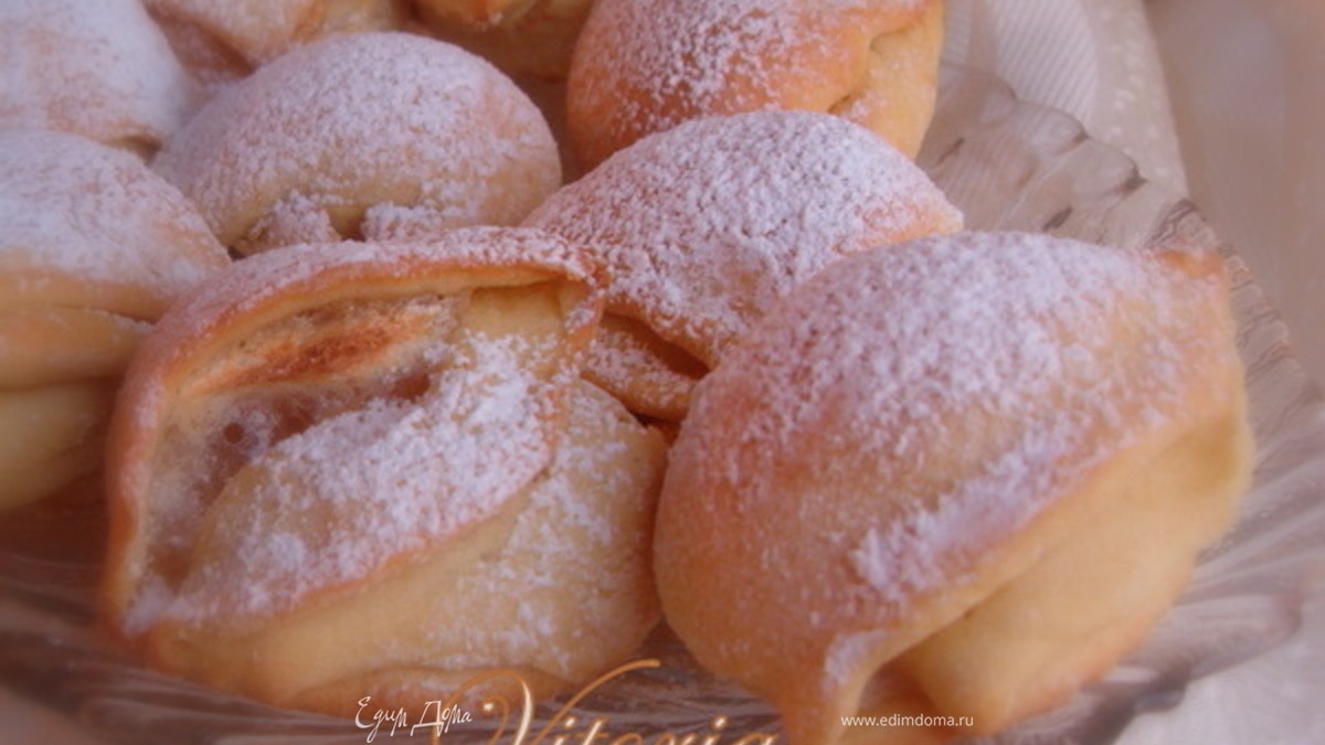 - Шаг 1Из масла и муки сделать крошку,добавить сметану,желтки4,ваниль,разрыхлитель Тесто убрать в холодильник на час.Из белков и сахара взбить пышную устойчивую пену.Тесто раскатать вырезать кружки на середину уложить начинку из белковой массы и сложить пополам,затем ещё раз.Выложить на противень высланный бумагой и запекать20 мин.