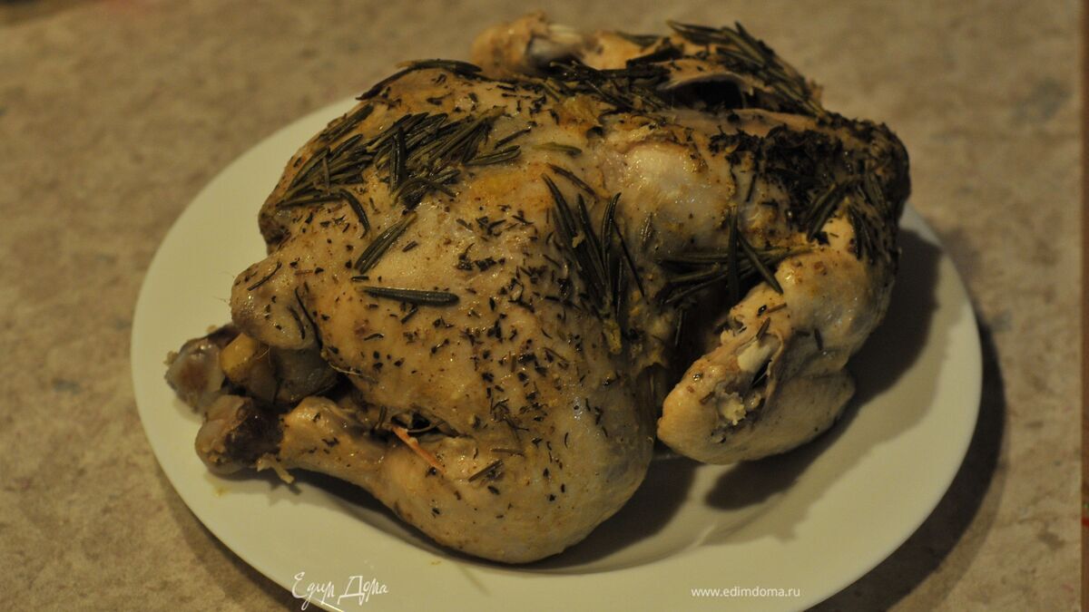 - ПодготовкаСмешать оливковое масло, соевый соус, сок из апельсинов, сок из лайма,соль, перец, сахар и розмарин. Курицу посолить, поперчить и натереть приправой для курицы (ибо в пароварке золотистая корочка не образуется, а приправка придаст бледному куриному трупику легчайший золотистый оттенок) Погрузить нашу прекрасную птицу в глубокую миску грудкой вниз, залить маринадом и отправить в холодильник на чем больше тем лучше