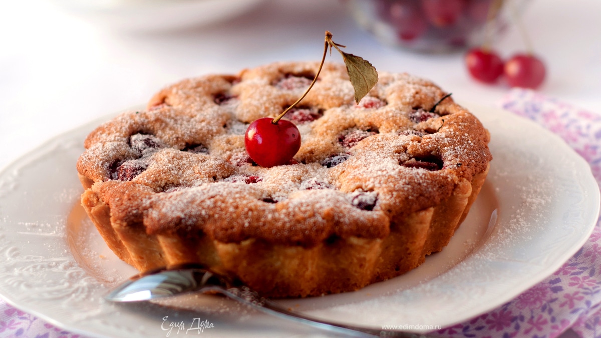 Влить в формочки с тестом миндальную пасту, сверху разложить вишню.И еще в духовку на полного их приготовления. Готовые тарталетки посыпать сахарной пудрой. Приятного чаепития!
