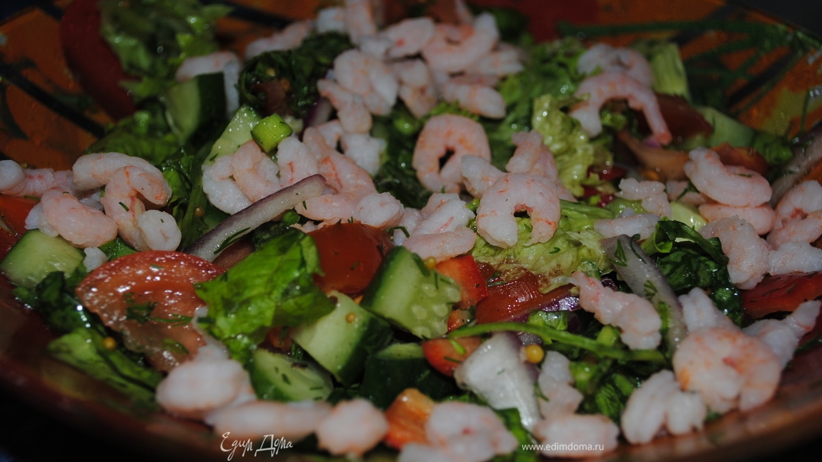 Овощной салат с креветками