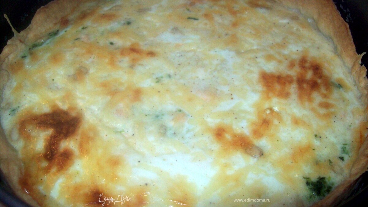 Киш с семгой, шпинатом и кедровыми орешками