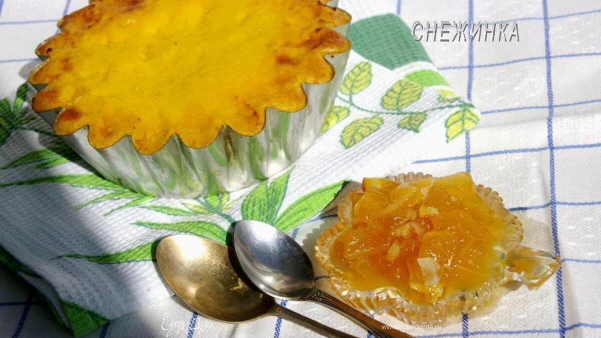 Готовую запеканку подаем с апельсиновым джемом. У меня было тыквенно-цитрусовое варенье.