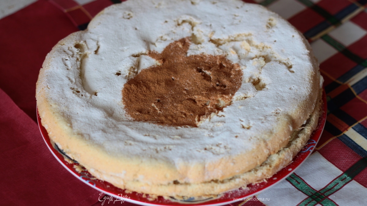 Даем бисквиту остыть на решетке, а потом разделяем вдоль на 2 равные части.