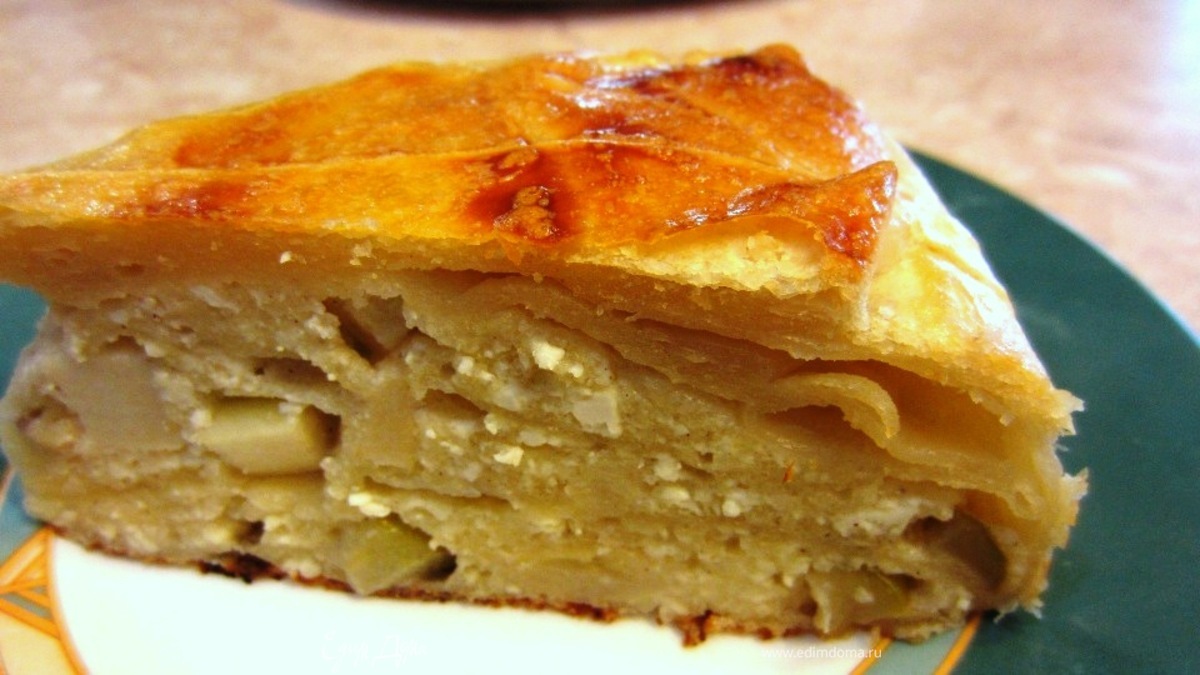 Слоёное тесто — хорошая альтернатива тесту фило. Промазывание слоёв маслом или водой поможет сделать пирог более сочным и предотвратить слипание пластов.