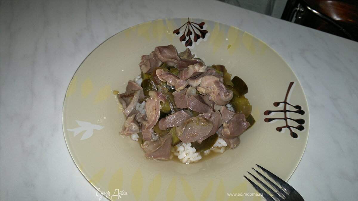 Очень вкусное и полезное блюдо, желудочки крайне диетические и полны полезных веществ, баклажан и лук дадут и горчинку и сладость, а так же разнообразят вкус и последние белый рассыпчатый рис закончит блюдо.