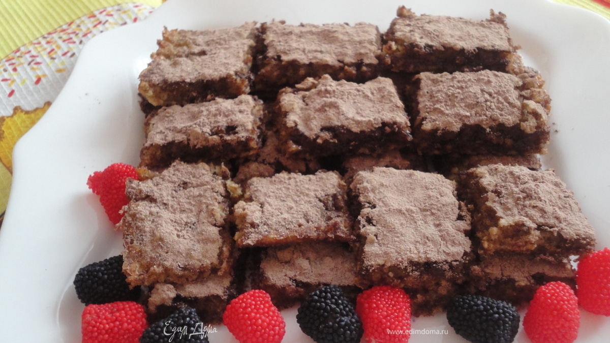 Смешать 2 чайные ложки сахарной пудры и 2 чайные ложки какао. - Шаг 8Готовый пирог остудить, посыпать приготовленной смесью. Разрезать на квадратики.