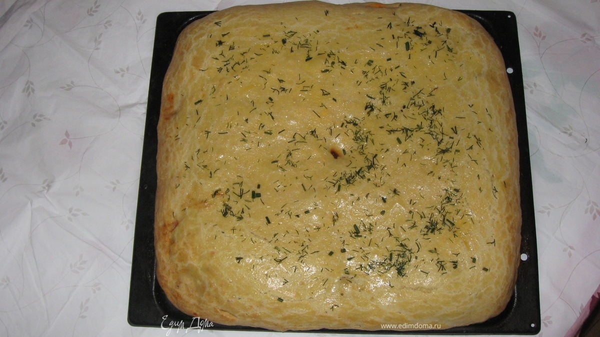 - Шаг 5Положить в блюдечко один желток, размешать и смазать им верх пирога. Середину пирога проткнуть ножом. Поставить в духовку на 30 мин. Выпекать на среднем огне. Готовый пирог накрыть полотенцем, дать остыть и можно подавать к столу.
