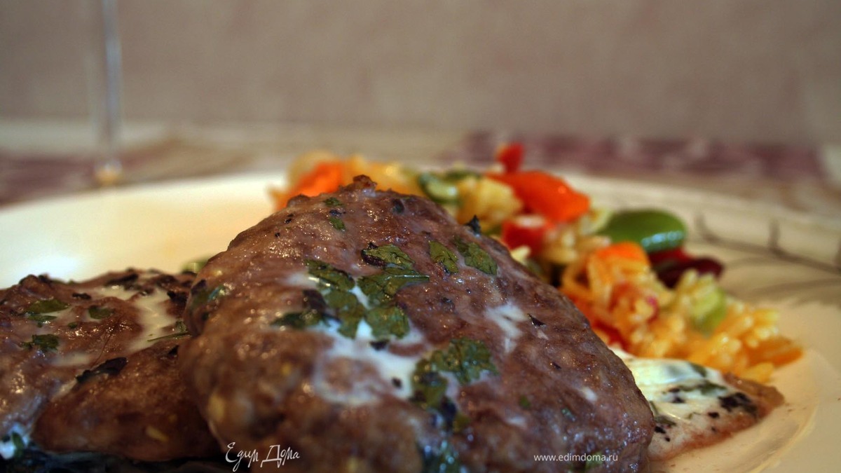 Яйцо и йогурт взбиваем венчиком, солим, добавляем петрушку и базилик. Поливаем соусом каждую котлетку. В оригинале соус не должен стечь, но у меня так не получилось. Наверное стоит йогурт взять погуще) Запекаем еще 10 минут.
