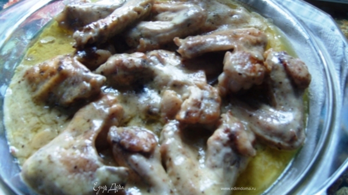 залить крылышки соусом и тушить под крышкой 30 минут на медленном огне - Шаг 6за 10 минут до готовности добавить смесь душистого перца и укроп