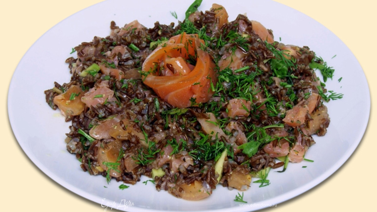 Салат из красного риса с форелью