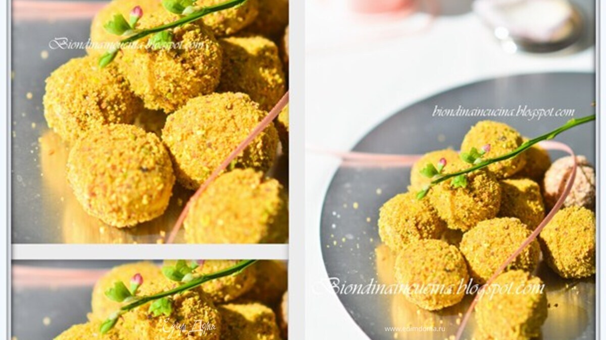 - Шаг 3Затем скатать из ганаша шарики,обвалять в молотых фисташках( или в миндальной муке).Хранить конфеты в холодильнике.