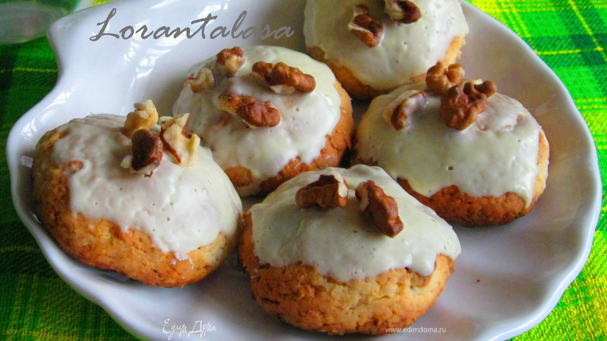 Еще горячими печенья обильно смазать при помощи кисточки шоколадом и посыпать орехами.
