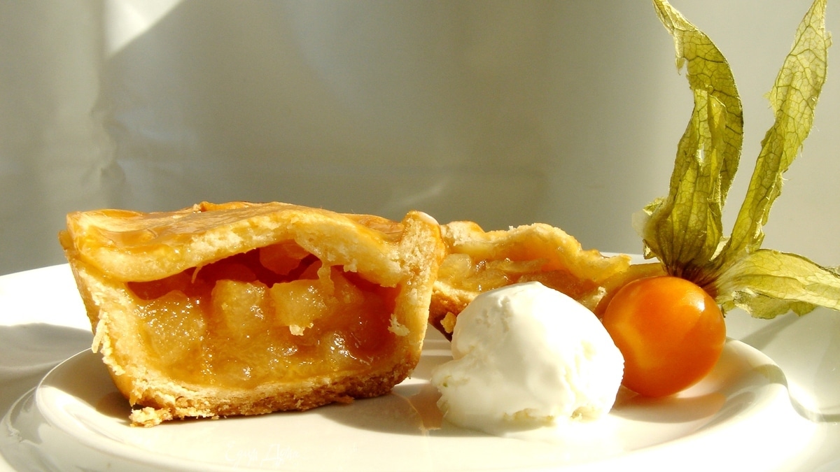 Смазать пирожки яйцом(я не смазывала) и выпекать при 200*С около получаса.Готовые пирожки немного остудить и извлечь из формы.Горячие хорошо подать с ванильным мороженым.Приятного аппетита!