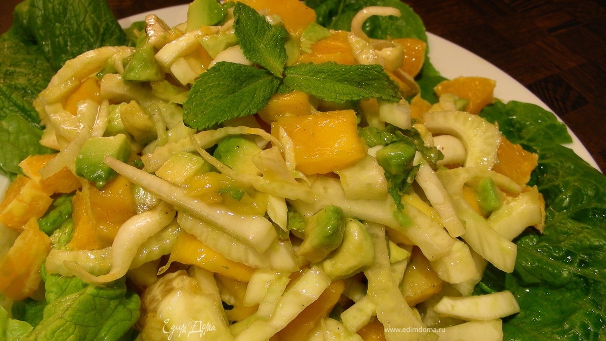 Весенний салат с авокадо, манго, фенхелем и апельсином