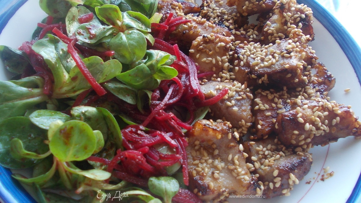 Свинина, маринованная в меде, с освежающим салатиком