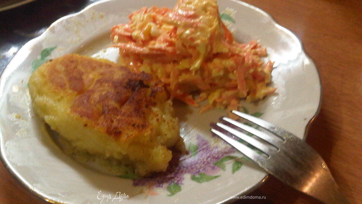 Это действительно обыкновенный ужин, картофельные котлетки и салат из морковки. Угощайтесь, пожалуйста!