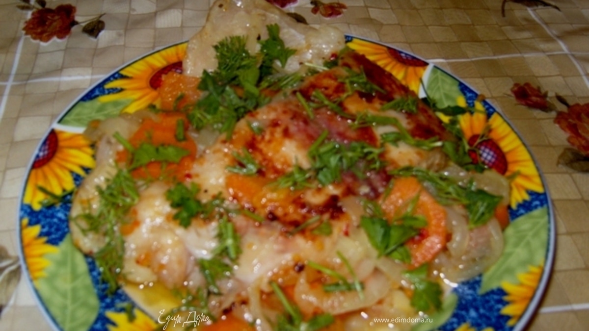 на фольгу лъём масло растительное примерно 1 ст,ложку приправы чуть-чуть ложим кусок рыбы посыпаем ещё приравой а сверху лук с морковью.заворачиваем рыбу в фольгу - Шаг 4