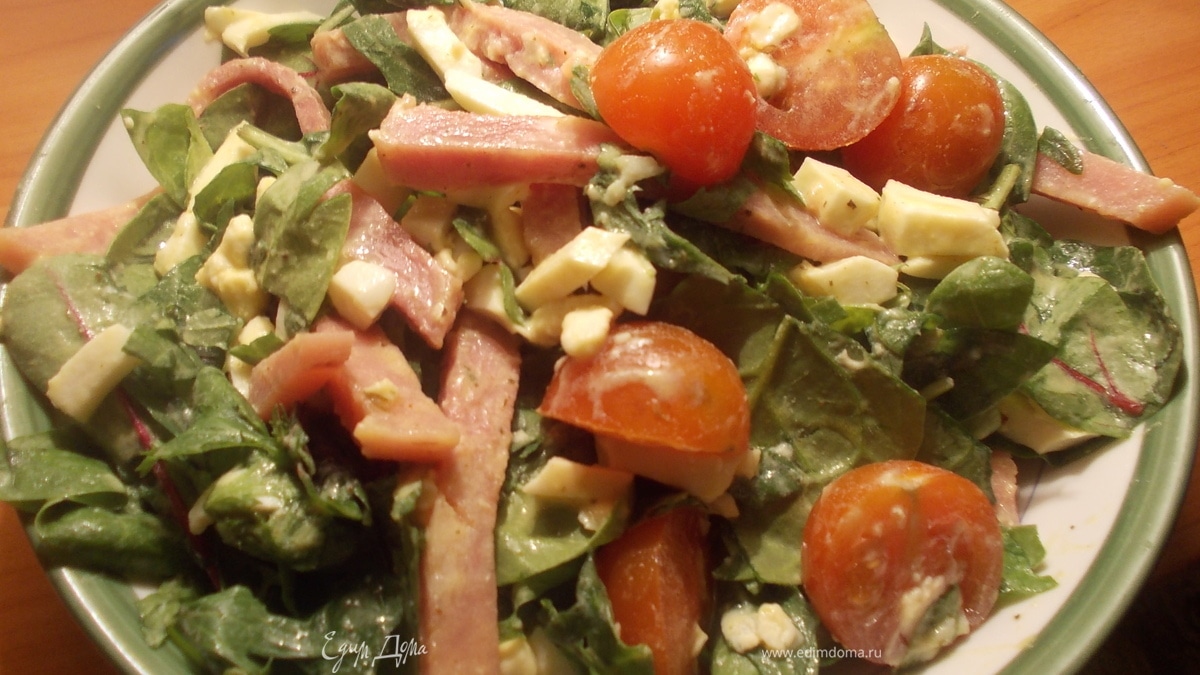 Лёгкий салат с зеленью и ветчиной с ароматной цитрусовой заправкой