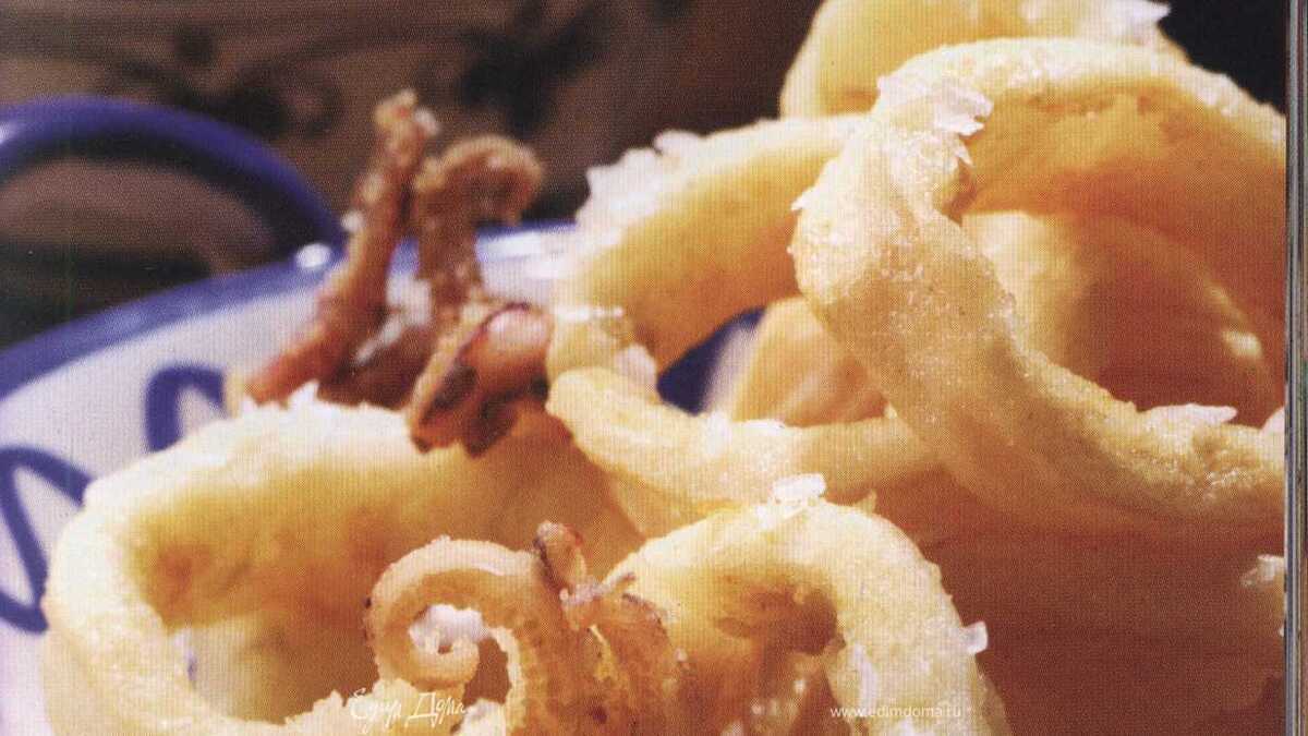 - Шаг 11. Порежьте кальмары кольцами 1 см толщиной и порежьте щупальца на 2 части, если они слишком большие. Промойте под проточной водой, высушите салфеткой и слегка обваляйте в муке. 2. В сотейнике подогрейте мало до 180-190 градусов (кусочек хлеба должен подрумяниваться за 30 секунд). Поджарьте кальмары 2-3 минуты, переворачивайте их во время жарки. Пока они не станут золотистыми и хрустящими. Не жарьте кальмары слишком долго, или температура масла снизится, и кальмары не будут хрустящими, они становятся слишком твердыми и «резиновыми». 3. Вытащите кальмары с помощью шумовки и выложите на салфетку. 4. Посыпьте кальмары солью и подавайте горячими с четвертинками лимона и чесночным соусом.