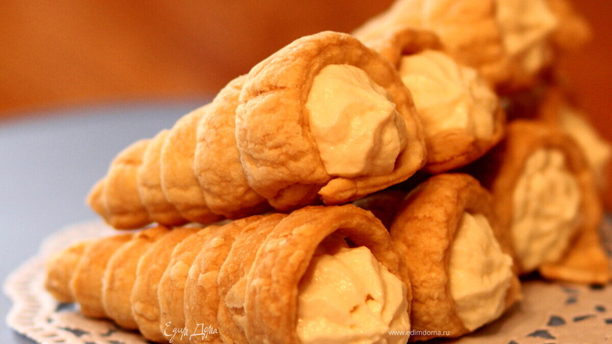 Слоеные трубочки с творожным кремом