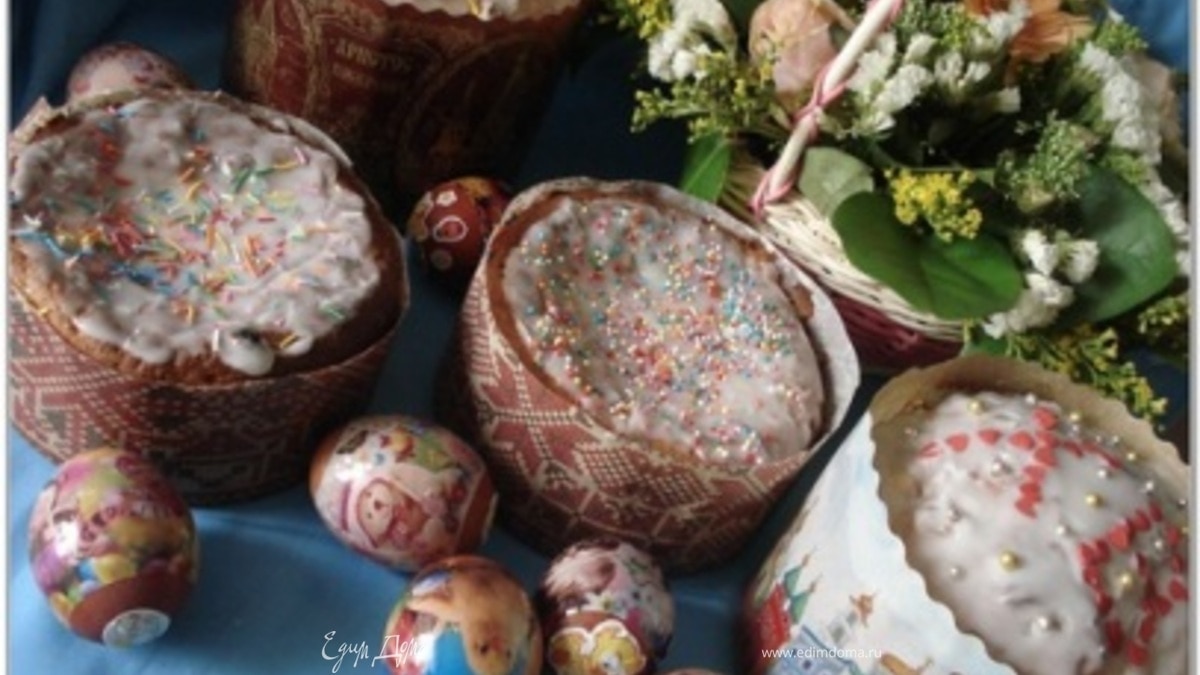Выпекать в предварительно разогретой до 150 градусов духовке 20 минут, затем увеличить температуру до 180 градусов и выпекать еще около 30-40 минут. Проверять готовность деревянной палочкой. Остудить готовые куличи и покрыть глазурью.