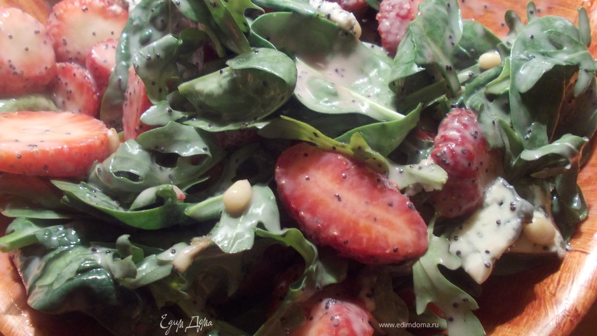 Аккуратно все перемешать,добавить кедровые орешки я ещё добавила несколько кусочков сыра с плесенью,но это не обязательно,салат и так наивкуснейший,сочненький и свеженький.