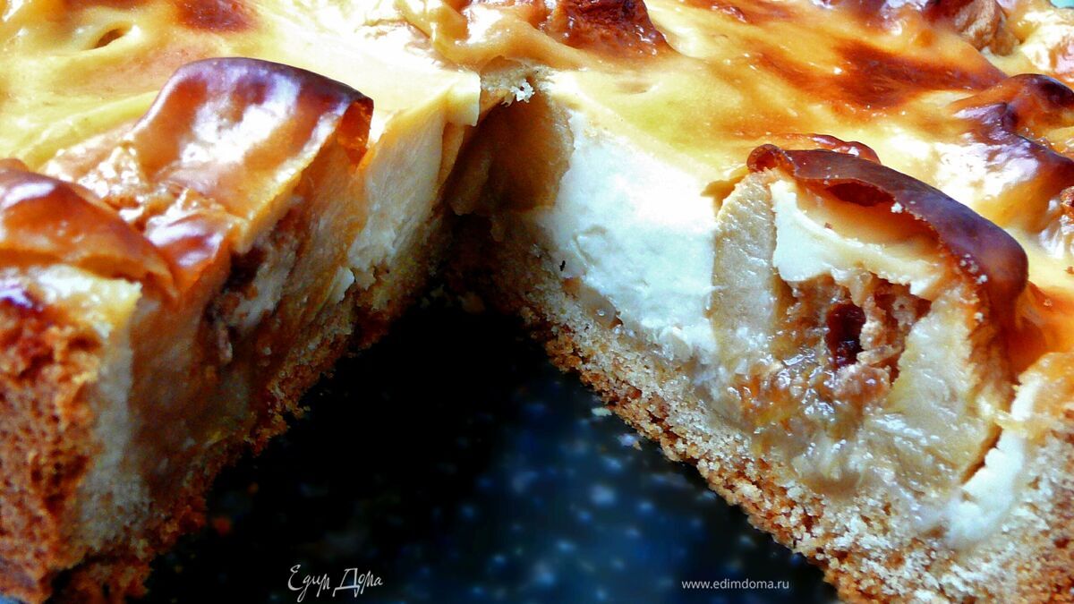 Пирог с печеными яблоками,с ванильным пудингом и ореховой нугой.Рецепт взят из журнала"Приятного аппетита"