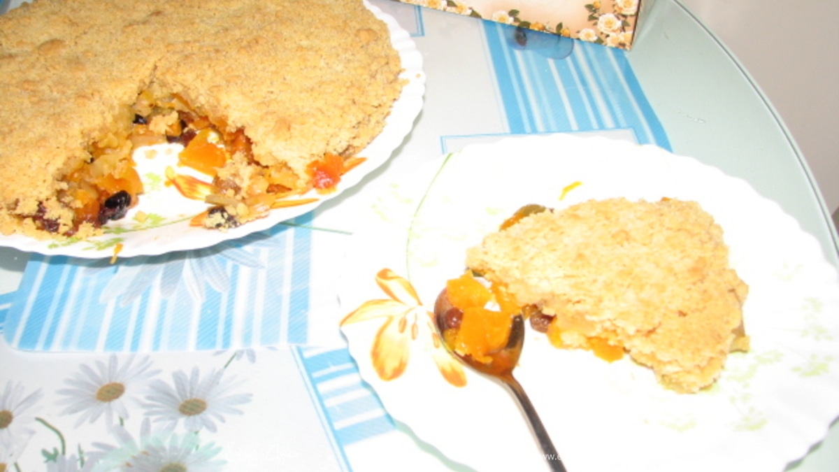форму для выпечки смазать маслом и на дно выложить фруктовую массу, а сверху тесто слоем, разровнять по окружности - Шаг 6