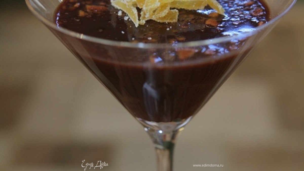 В глубокий бокал выложить 1 ч. ложку измельченного печенья, сверху несколько полосок имбиря, затем слой кураги, еще немного печенья и имбиря. - Шаг 7