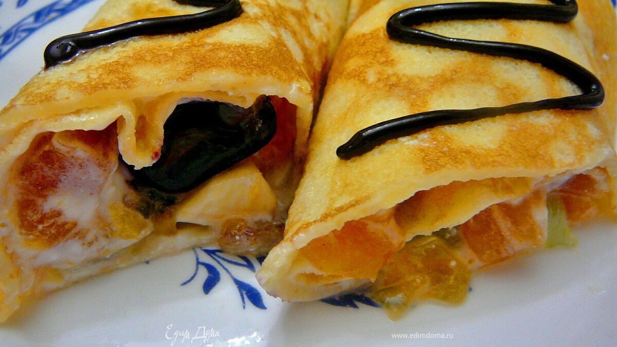 я подавала с фруктами и сладким творожком 25%жирности,полив шоколадным топингом. - Шаг 6