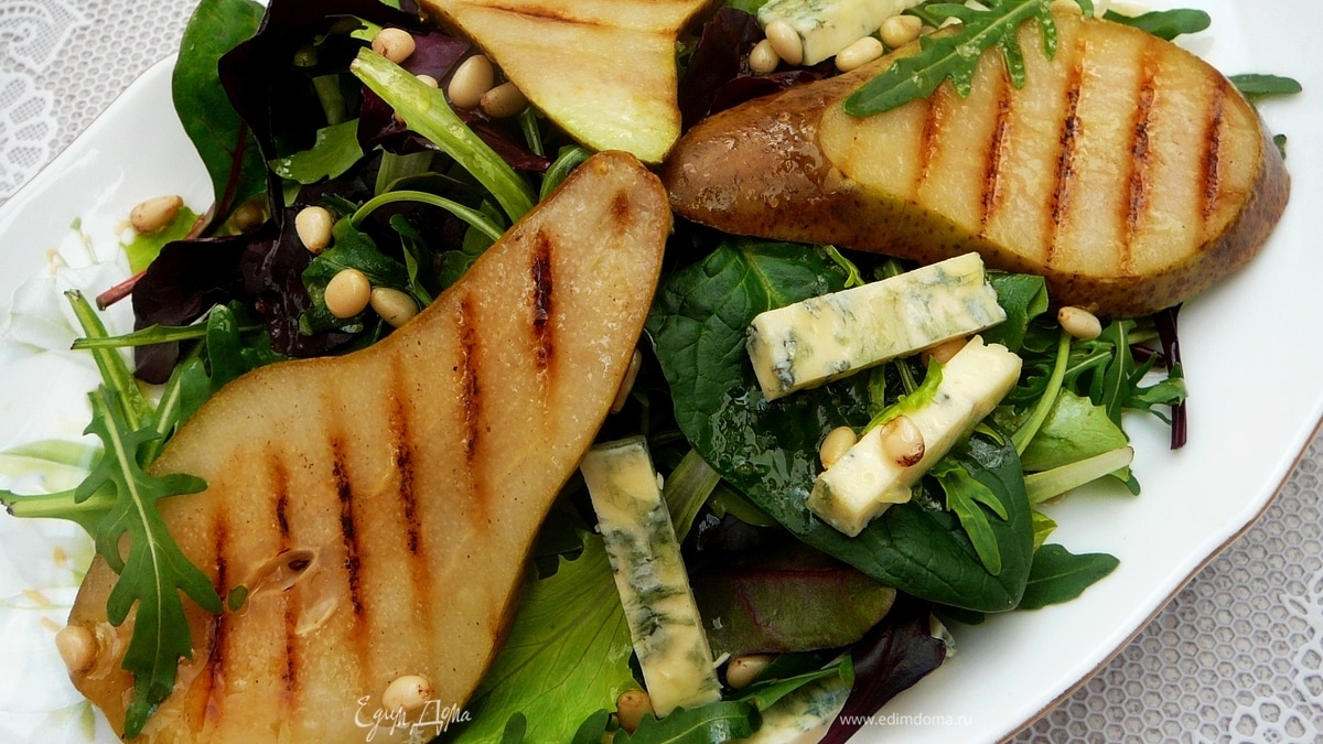 Зеленый салат с грушами гриль