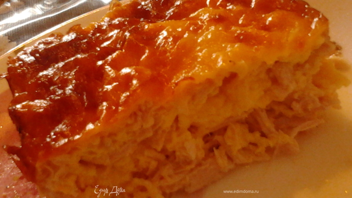 в подсоленной воде отварить кур.филе и порезать на ваш вкус.У меня первый слой получился пластинками,а последующий я порвала.Выложить кур.филе в огнеупорную посуду смазанную маслом - Шаг 1