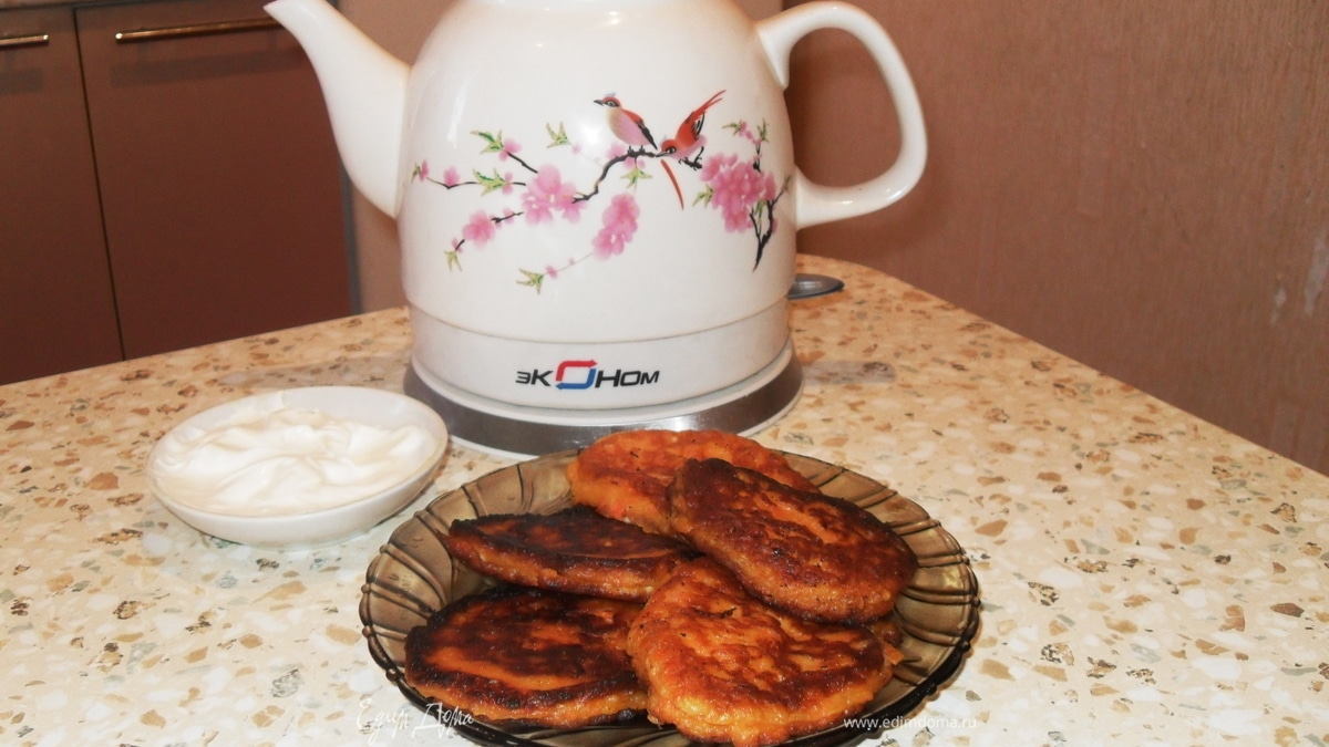 - Шаг 1Морковь отварить, измельчить в пюре в блендере или мясорубке. Соединить все ингредиенты: морковное пюре, творог, яйца, сахар, соль, соду, муку в последний момент. Котлетки обжаривать на разогретой сковороде на растительном масле, Подавать с медом или сметаной. Я предпочитаю сметану.