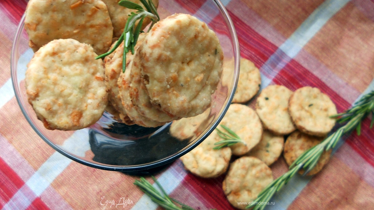 - Шаг 2Раскатать часть теста (остальную держать в холодильнике) в пласт примерно 0,7-1 см, выемкой вырезать печенье. Повторить процедуру с остальным тестом. Выложить на застеленный бумагой противень и выпекать в предварительно разогретой духовке минут 10-12 (готовое печенье достаточно мягкое, в процессе остывания подсохнет). Очень душевно и сырно-розмариново:))