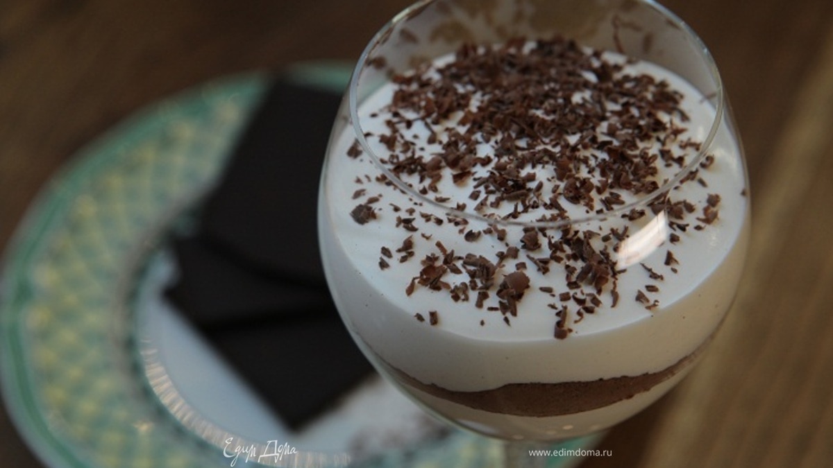 Шоколад натереть на мелкой терке и посыпать десерт.