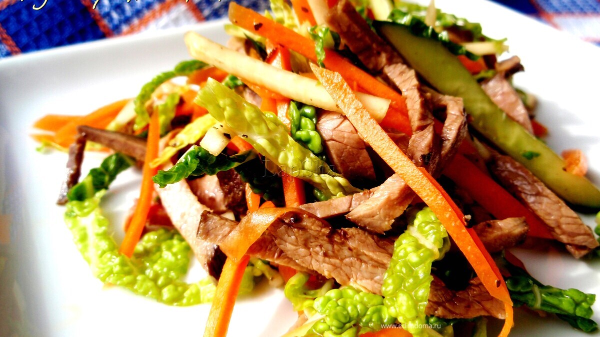 Просто восхитительный салат, я от него в восторге. Приятно хрустит, имеет очень интересный вкус и здорово насыщает. Так же он очень полезный и простой в приготовлении. Идеально подходит, если у вас осталось запеченное мясо с ужина. Угощайтесь, уверяю вы не останетесь равнодушны.