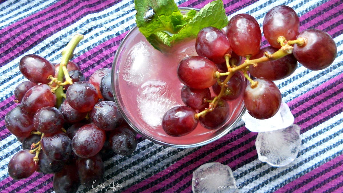 - Шаг 1Мяту слегка растереть с соком лимона/лайма и сахаром. Присоединить виноград (предварительно хорошо подавить его чем-нибудь плоским). Залить все водой и дать настояться как минимум часа 4, а лучше 6. Перед подачей рекомендую процедить через сито!