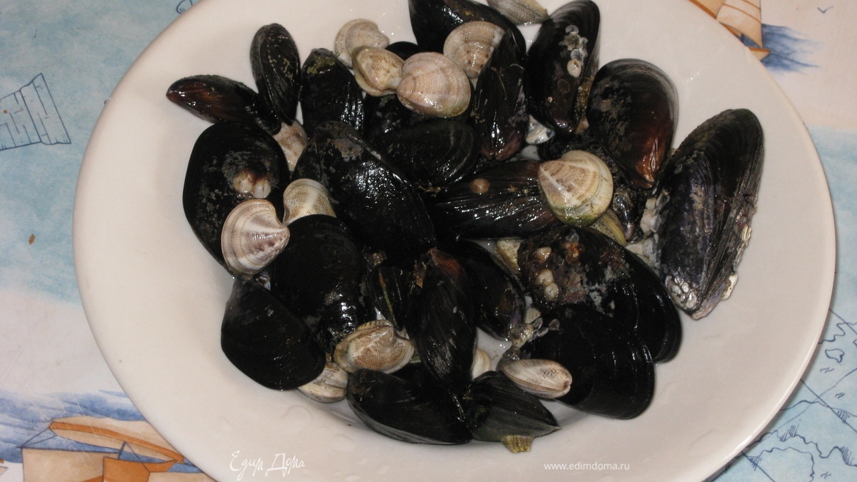 - Шаг 4Готовую пасту смешать с мидиевой смесью и дать постоять (можно прогреть на огне) пару минут. Можно мидиевую смесь выкладывать сразу на пасту. Второй вариант такого блюда на Украине - вместо сметаны и сыра - томатная паста из свежих помидоров.