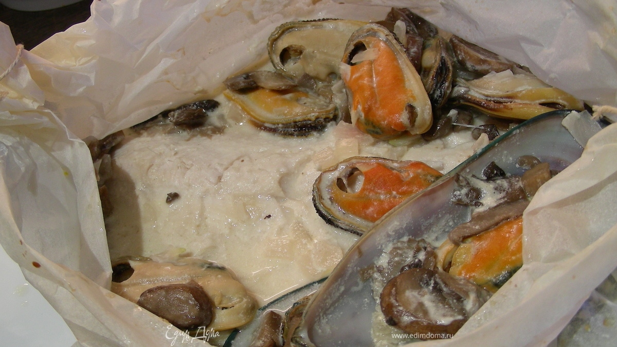 Такая рыбка отлично подойдет для праздничного стола или романтического ужина)) она получается очень нежная и вкусная,отлично пропитывается всеми ароматами, а соус - просто объеденье)) рецепт из французского Saveurs) в оригинальном рецепте используются моллюски, их фото я добавила внизу; мне они в этот раз не попались, поэтому я взяла мидии) пропорции я тоже немного поменяла - добавила побольше грибов и мидий)