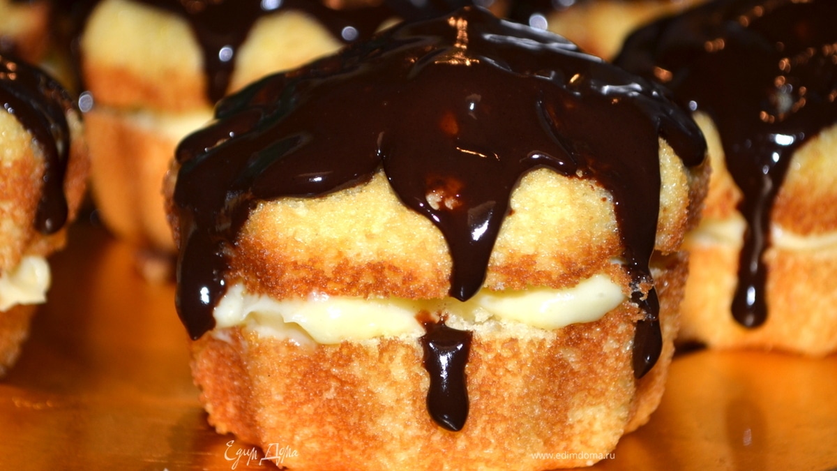Капкейки "Бостон" с кремом и шоколадной глазурью