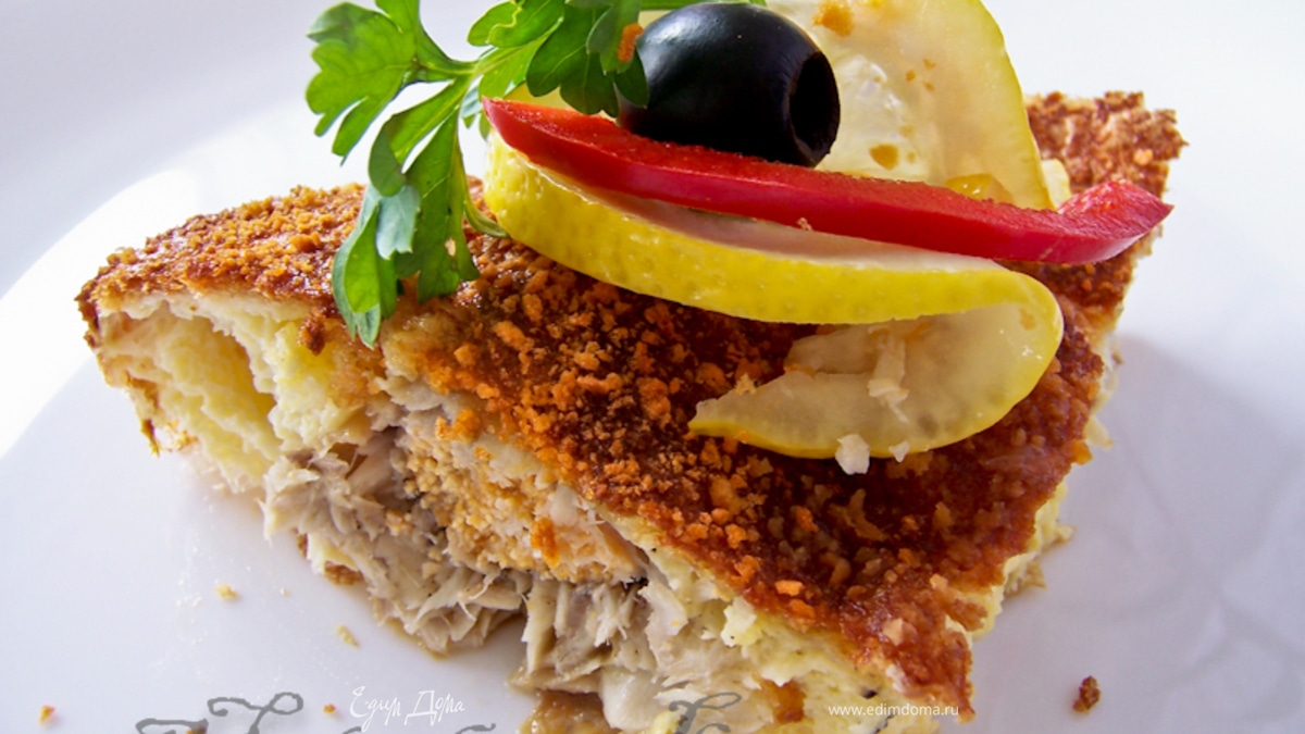 Залить рыбу яично-сырной смесью. Выпекать 25 минут при 200 градусах. Суфле должно подняться и хорошо подрумяниться. - Шаг 8Подавать теплым, разделив на порционные кусочки, пока суфле не опало. Украсить по желанию. Приятного аппетита!