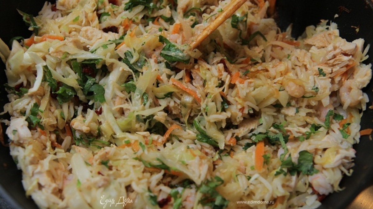 Когда капуста будет практически готова, добавить финики. В самом конце всыпать орехи, все перемешать и снять с огня.