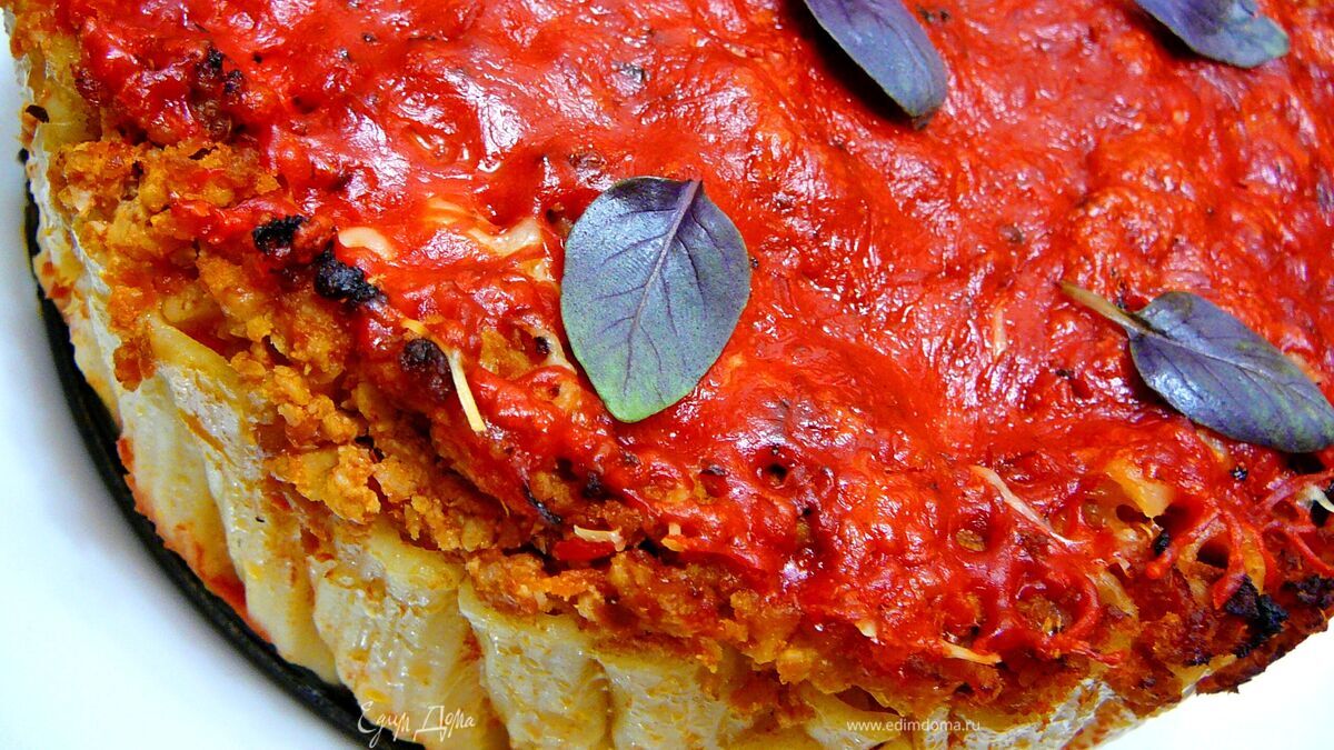 Достать "лазанью" из духовки и посыпать,если остался,пармезаном и томатным сыром. - Шаг 12
