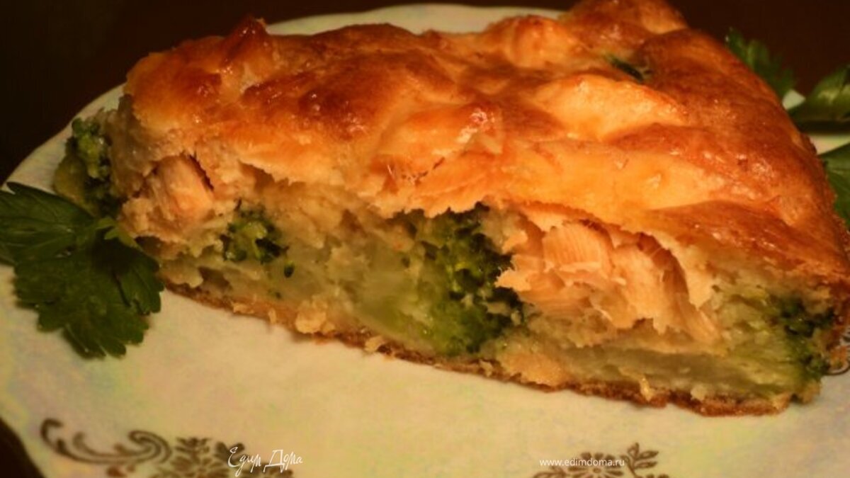 Пирог с семгой и брокколи