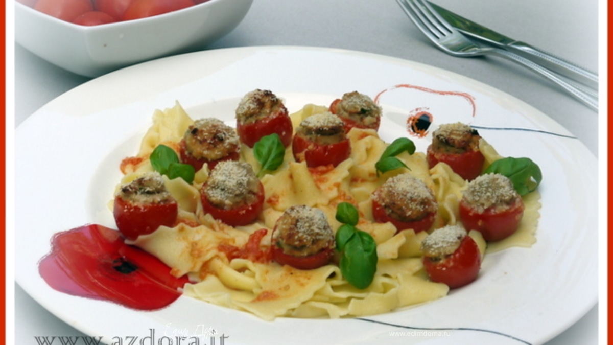 Домашние паппарделле с фаршированными помидорчиками