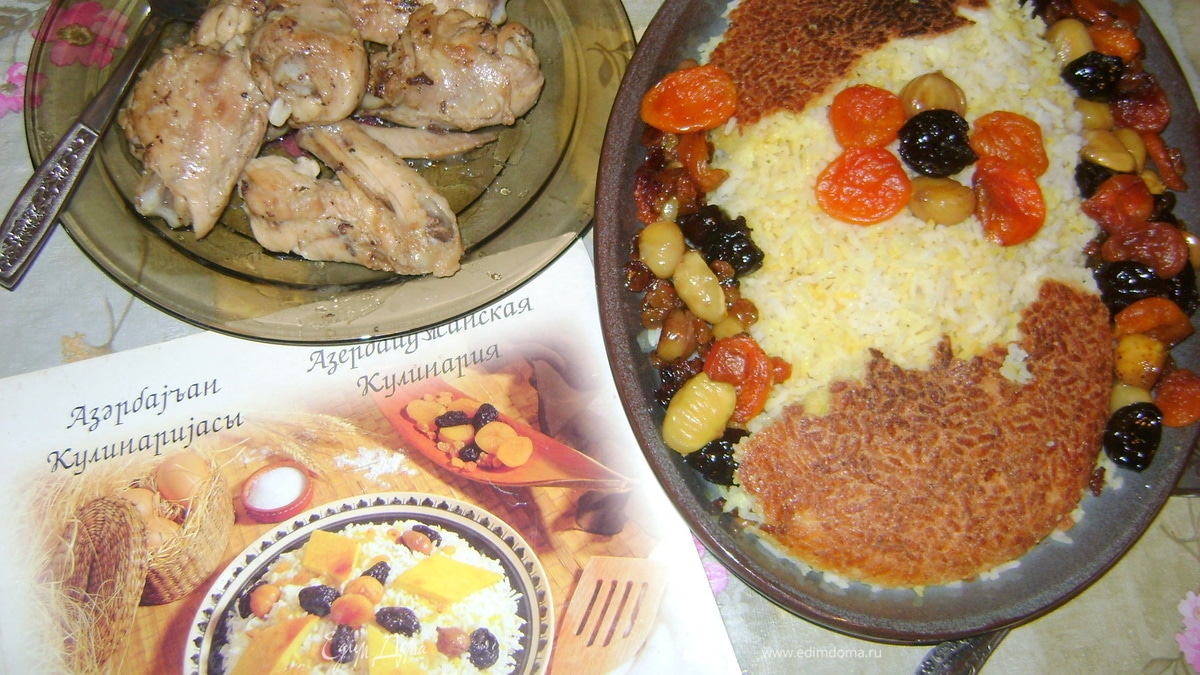 - Шаг 5Крышку обернула бумагой и вафельным полотенцем,накрыть этой крышкой кастрюлю, кастрюля должна быть плотно закрыта и поставить упариваться на медленном огне.оставить надо минут на 30-40, до готовности.... такой плов при подаче на стол, берут черпаком со дна и выкладывают на тарелку вместе с газмагом, плов, политый между слоями маслом, при подаче не обязательно поливать сверху маслом для придания рису блеска,можно добавить в кипящую воду с рисом немного лимонной кислоты....сухофрукты (у меня чернослив, изюм, курага) перебрать,замочить в воде, пока они немного не набухнут. И еще нужны каштаны (у меня уже отваренные). обжарить все это на слив масле, буквально минут 7 (можно посыпать все это сахаром) но я не делала этого. отдельно пожарить мясо, которое желаете (у меня курица) и все это подавать вместе...